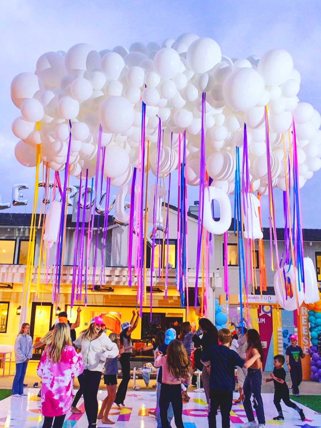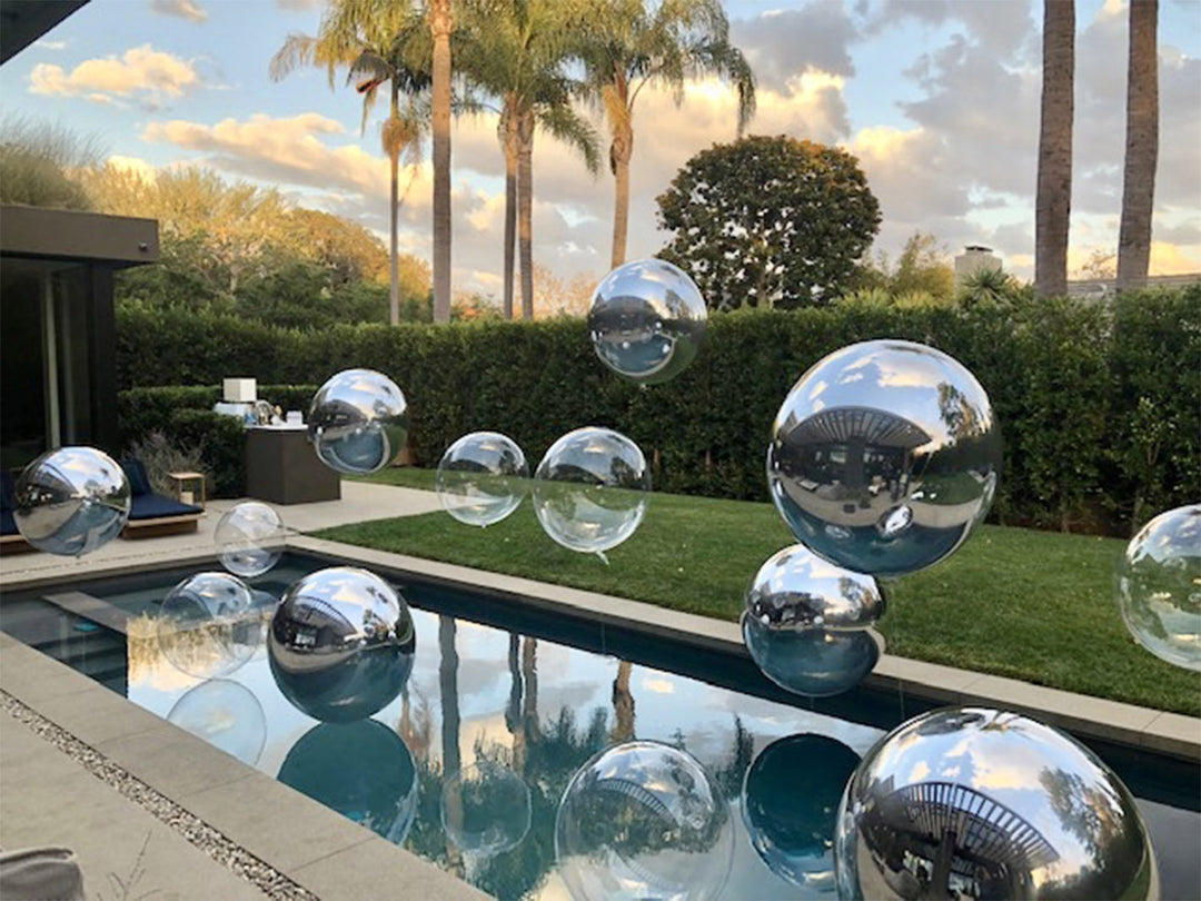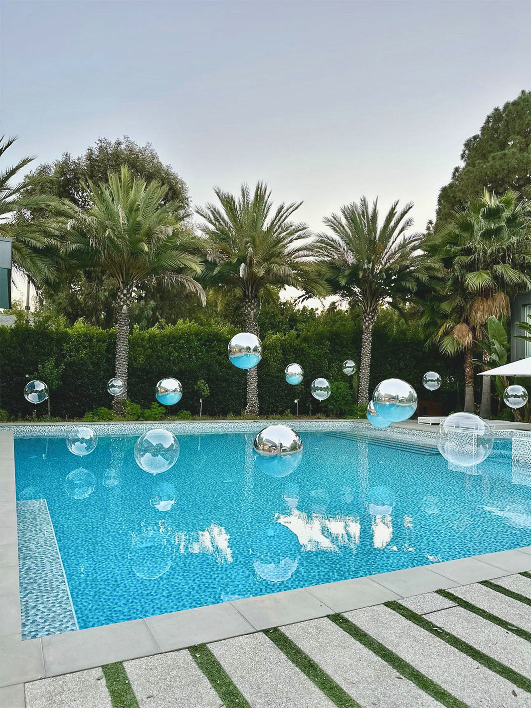 For an elegant event, order a spectacular pool installation of varying balloons floating on the surface of your pool that transforms your skyline. Perfect for pool parties, weddings, birthdays or holidays.