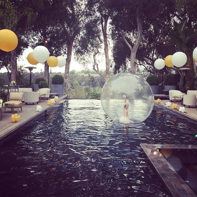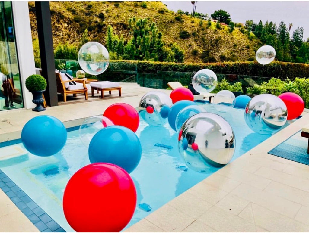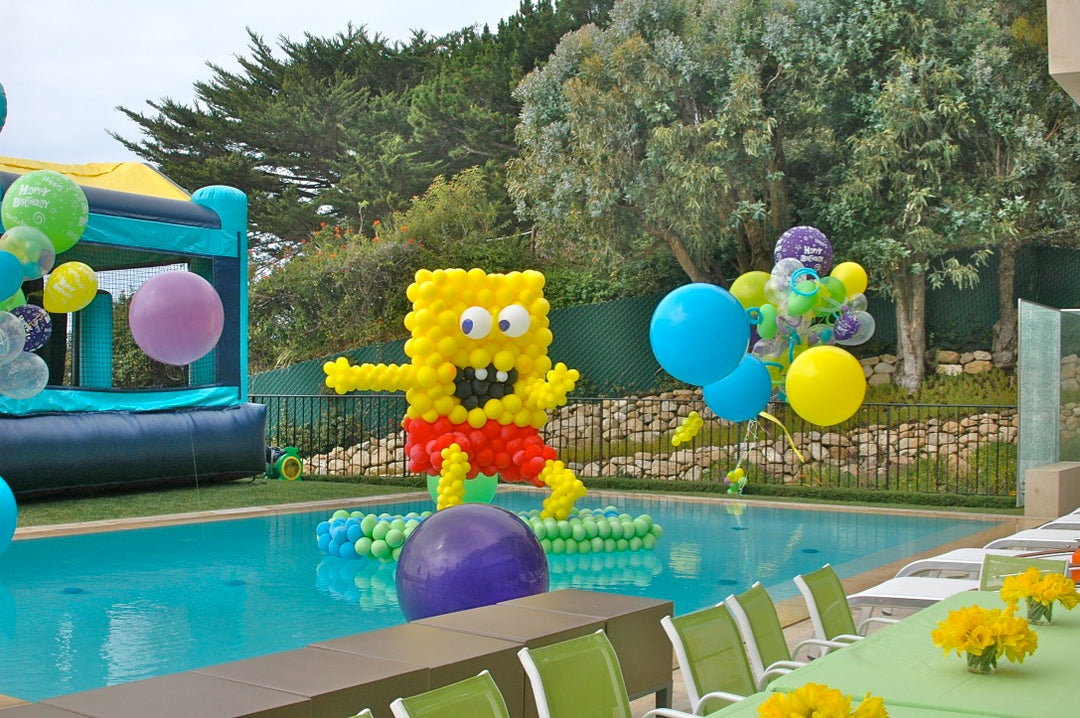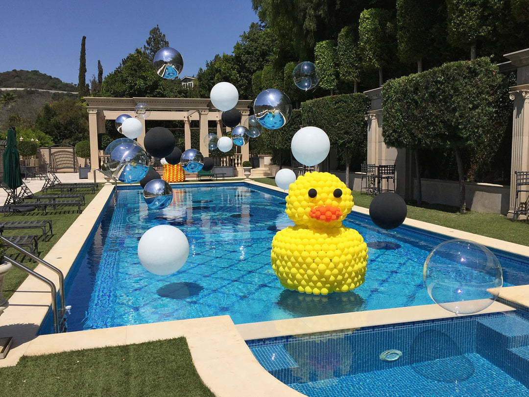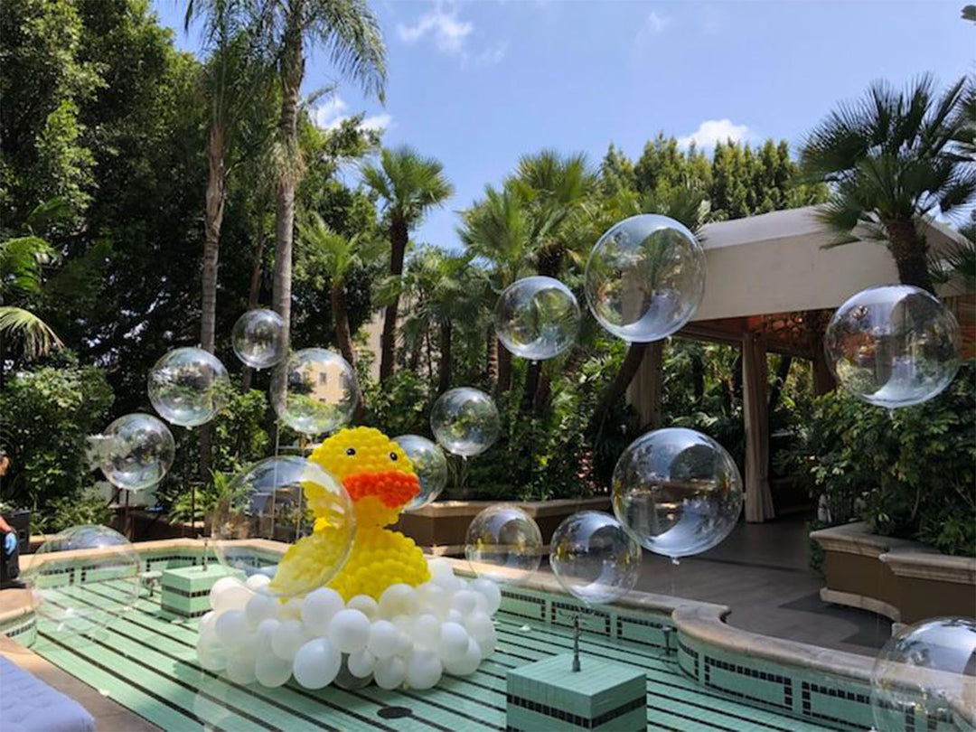 We floated bubble balloons above the water to really show that ducky swimming in a bubble bath!